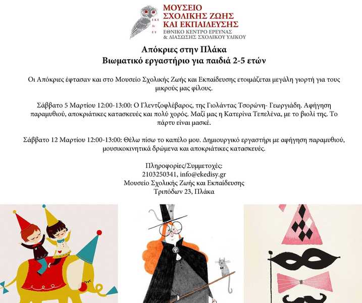 Οι Απόκριες έφτασαν και στο Μουσείο Σχολικής Ζωής και Εκπαίδευσης ετοιμάζεται μεγάλη γιορτή για τους μικρούς μας φίλους.