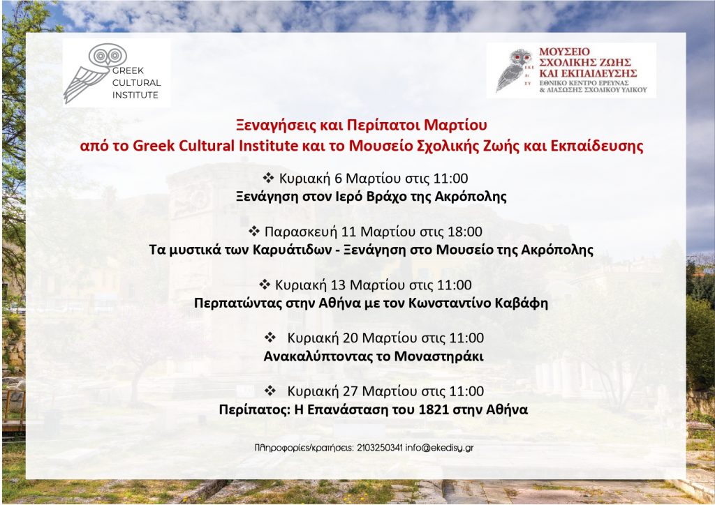 Δείτε όλο το πρόγραμμα με τους περιπάτους και τις ξεναγήσεις για τον Μάρτιο