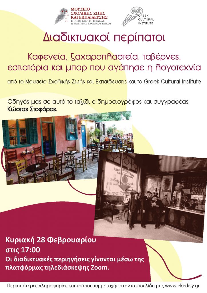 Διαδικτυακός Περίπατος στα καφενεία, ζαχαροπλαστεία, ταβέρνες, εστιατόρια και μπαρ που αγάπησε η λογοτεχνία