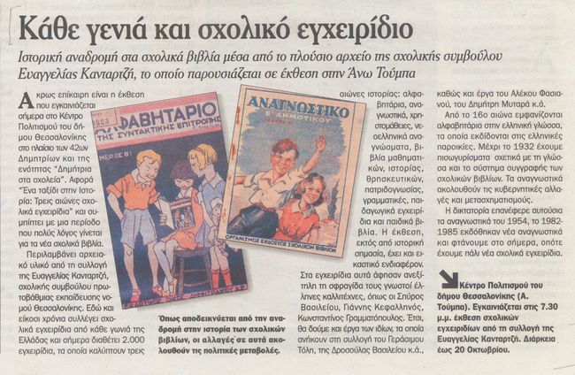 ‘Αρθρο στην εφημερίδα Μακεδονία (21 Σεπτεμβρίου 2007) με αφορμή την Έκθεση στα Δημήτρια Θεσσαλονίκης