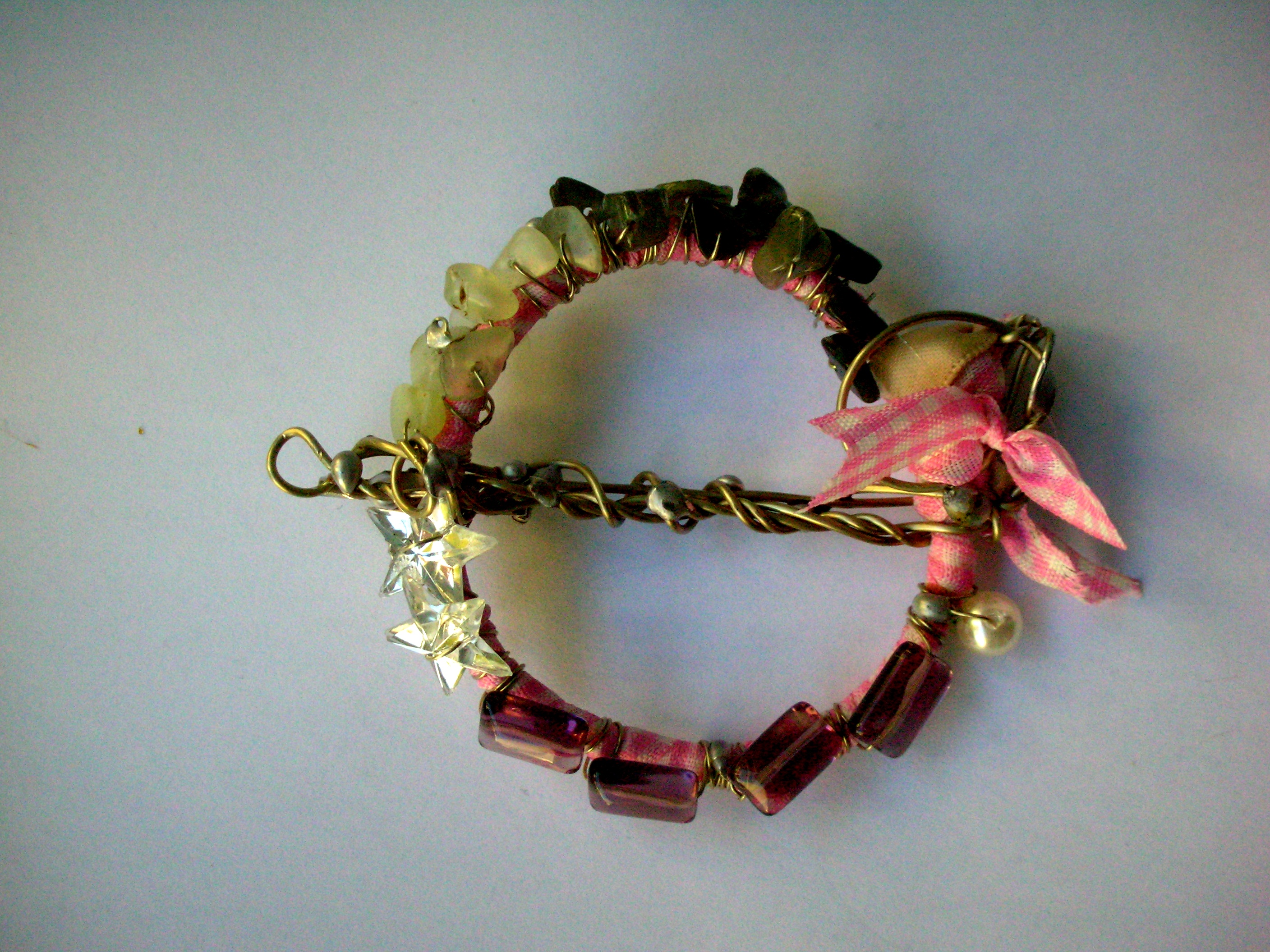 17 Νοεμβρίου:φτιάχνουμε βραχιόλι από ύφασμα και σύρμα χάντρες, κορδέλες, μεταλλική βάση