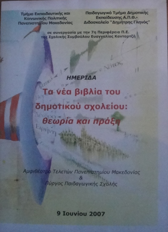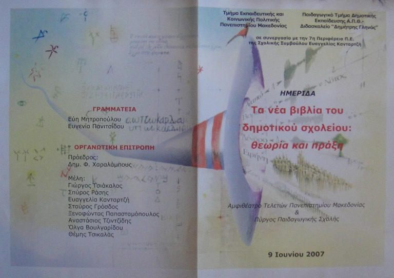 Το Τμήμα Εκπαιδευτικής και Κοινωνικής Πολιτικής Πανεπιστημίου Μακεδονίας, το Παιδαγωγικό Τμήμα Δημοτικής Εκπαίδευσης Α.Π.Θ.-Διδασκαλείο “Δημήτρης Γληνός” σε συνεργασία με τη Σχολική Σύμβουλο Ευαγγελία Κανταρτζή οργάνωσαν ημερίδα στις 9 Ιουνίου 2007 με τίτλο