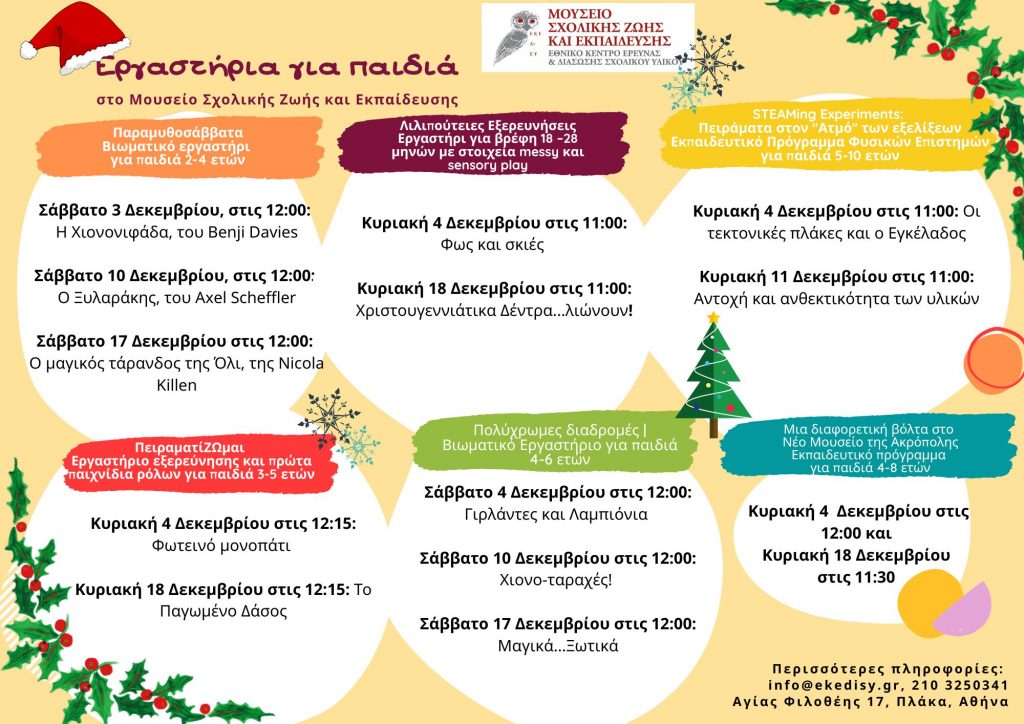 Εργαστήρια Δεκεμβρίου για παιδιά στο Μουσείο Σχολικής Ζωής και Εκπαίδευσης