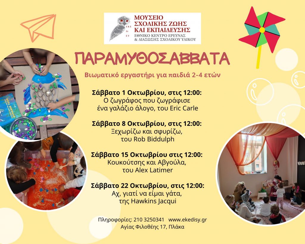 Κόστος Συμμετοχής: 12€ (ο κύκλος 4 εργαστηρίων Οκτωβρίου 40€)