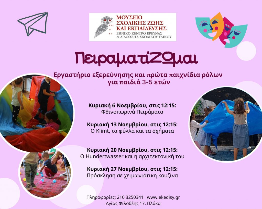 Κόστος Συμμετοχής: 12€ (ο κύκλος 4 εργαστηρίων Νοεμβρίου 40€).
