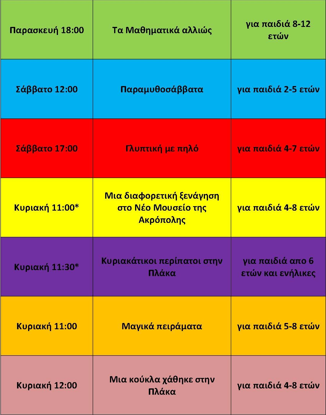 *Το πρόγραμμα «Μια διαφορετική ξενάγηση στο Νέο Μουσείο της Ακρόπολης» δεν περιλαμβάνεται στην προσφορά.