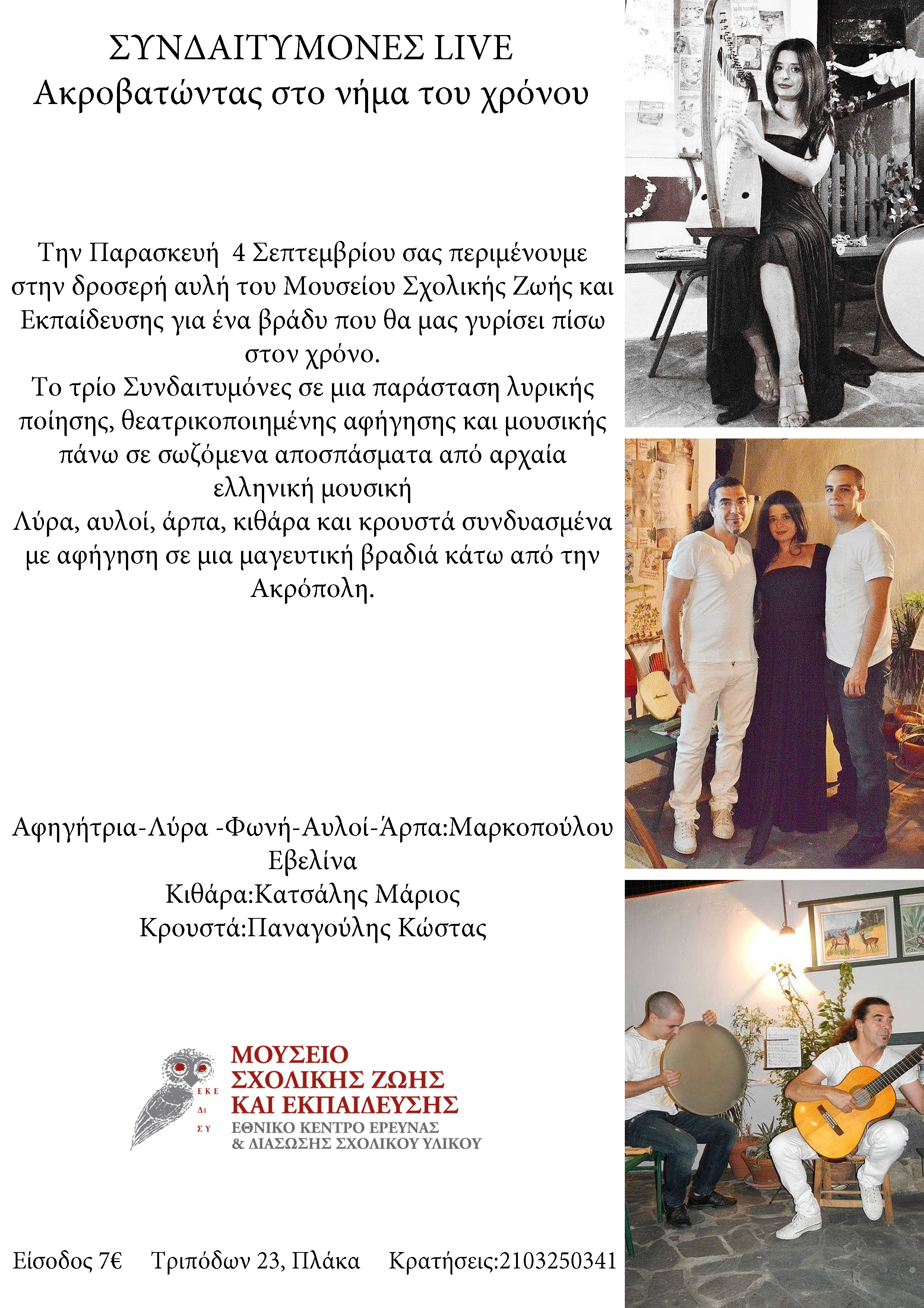 Την Παρασκευή 04/09 στις 21:00 στην αυλή του Μουσείου Σχολικής Ζωής και Εκπαίδευσης.